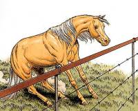 A quick and easy addition of a HorseGuard tape to an existing dangerous fence will provide safe protection for your horse. Previous customers acclaim : " A hot wire even the horse can see." |