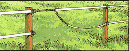 shape will work. Just connect it to your fence charger. Hook the gate this way when the pasture is empty, in order to avoid sparks on the ground. This also shows you that there are no horses in the pasture.